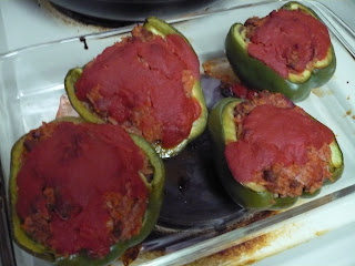 Honey? Hmm…don’t want to imagine that. But this looks rather good. What I usually do is save the tomato sauce for last and put it on there after I take the stuffed peppers out of the oven. Oh, and I also stuff raw ground beef with cooked rice in the pepper, and let it bake in the oven. Makes it juicier for some reason.