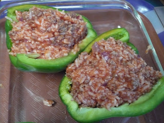 Honey? odd addition for stuffed bell peppers. my husband made these for me last week. Whilst trying to be creative the peppers did not come out cooked enough. Bum. The pepper part is my favorite! But because love prevails I acted like it was very delicious. 😉